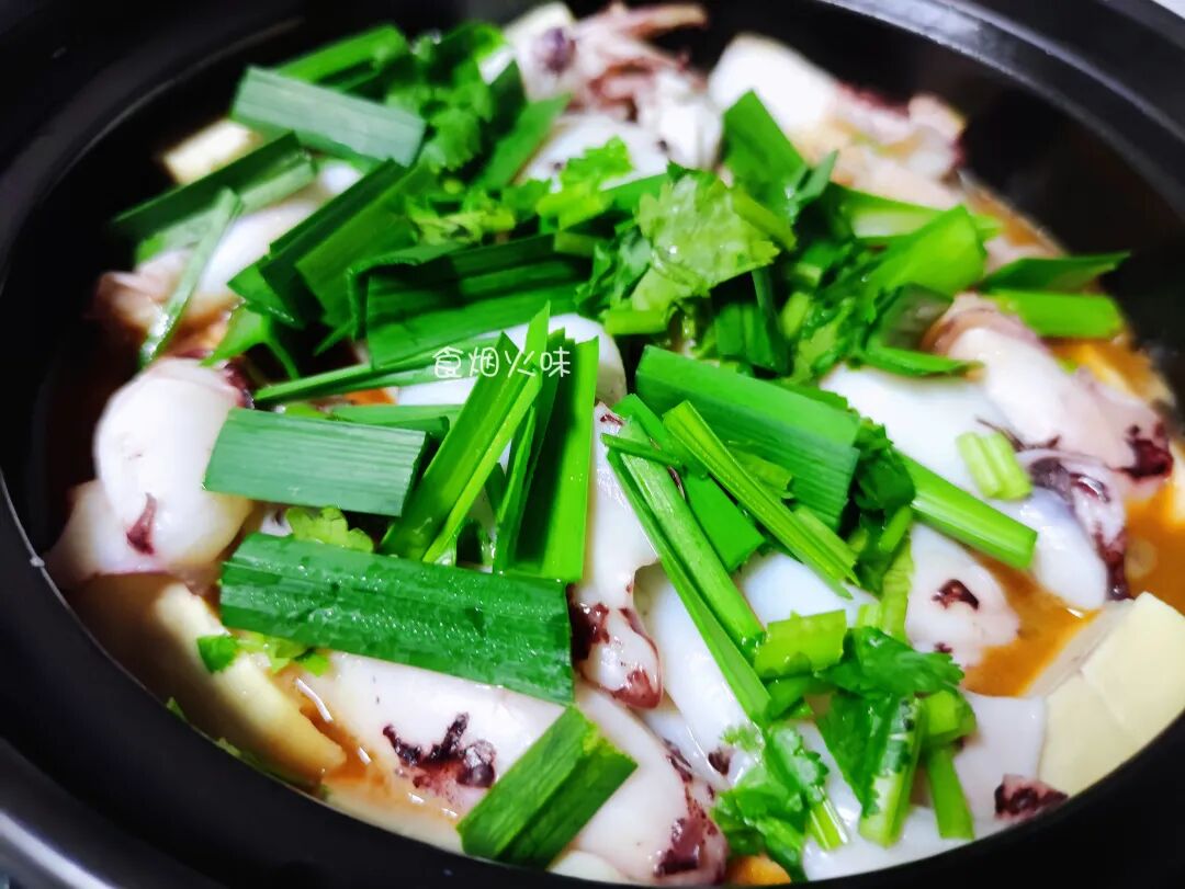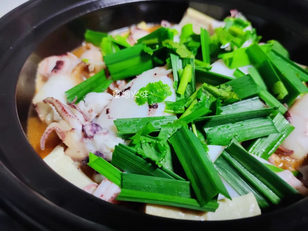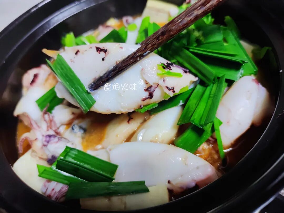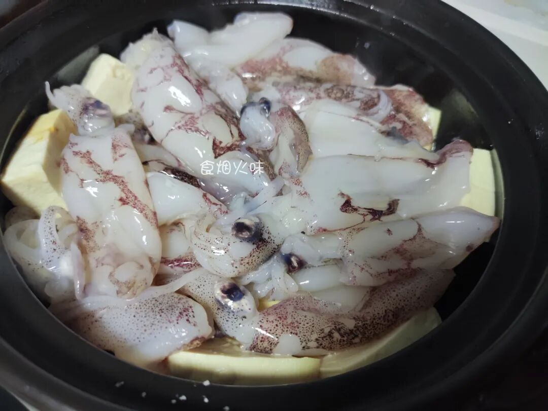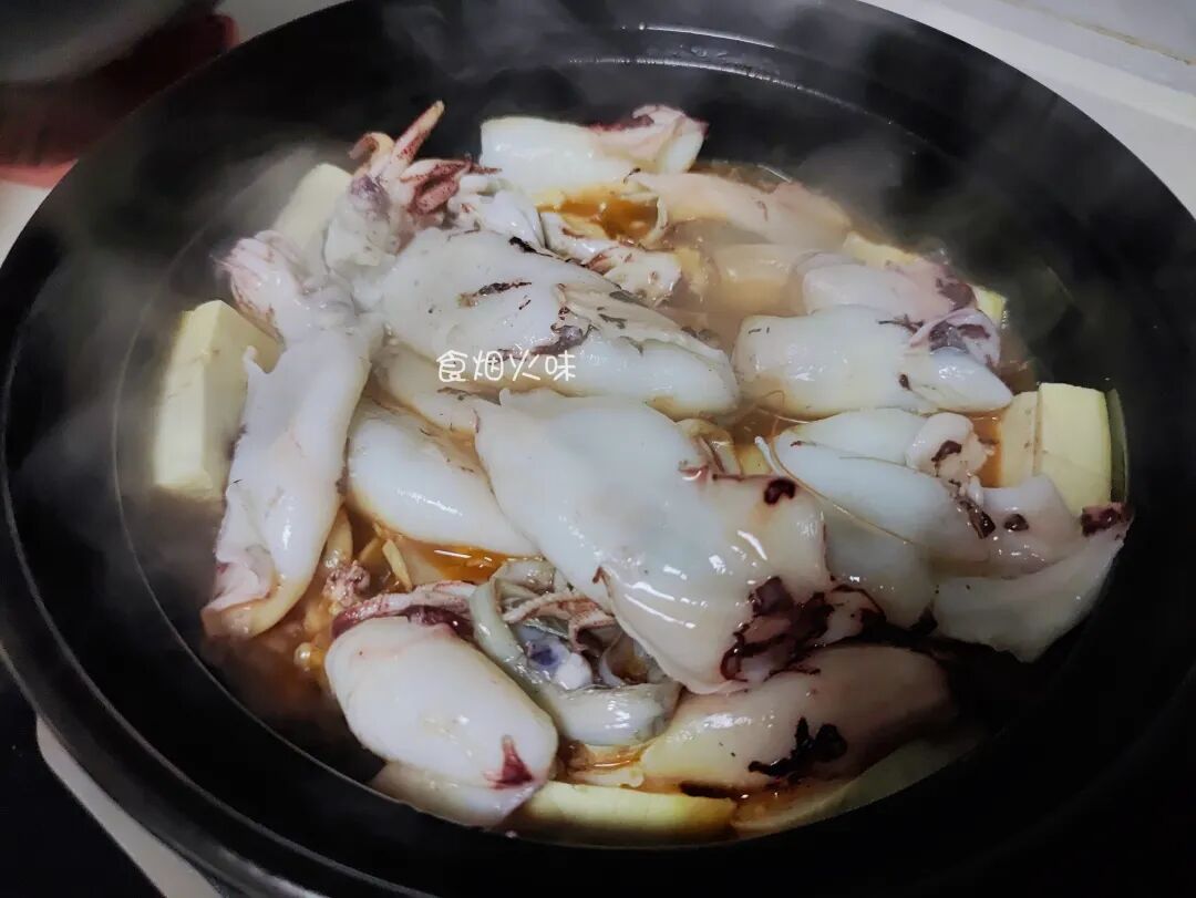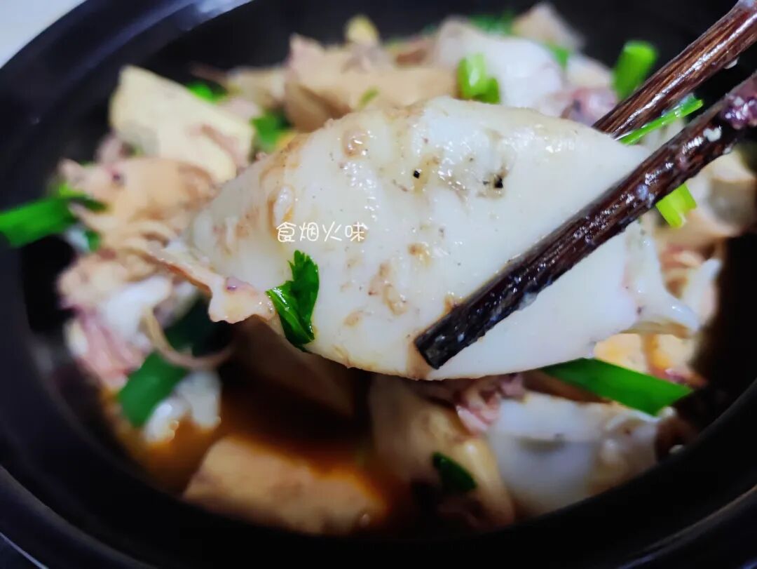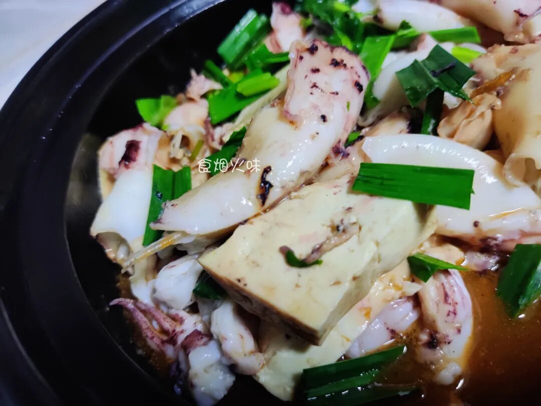 鱿鱼的口感爽脆,而豆腐嫩滑鲜美,吸收了鱿鱼的汤汁,鲜甜美味。这样简单的一煮,鱿鱼好吃,而且能保持其鲜味,好吃超级下饭。