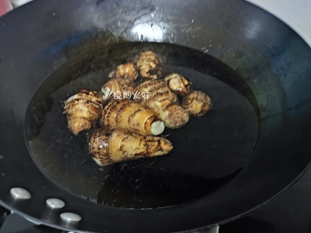 3.煮的过程中,如果想要确定一下,芋艿是否煮熟,可以用筷子掐一下表面。如果很容易掐进去,则说明芋艿已经煮熟了。煮熟后的芋艿捞出放在一旁放凉;