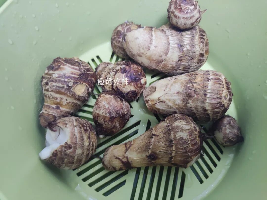 1.芋艿个头很小,如果直接去皮会相对费劲,所以一般芋艿是先将其清洗干净,然后放在盆中,用清水将其冲洗干净,直接丢入锅中煮。煮熟后的芋头就很好去皮了。准备好的芋艿放在盆中,用手将其表面搓洗干净,它的表面会有很多浓毛,要处理干净。洗净后的芋艿放在一旁备用;