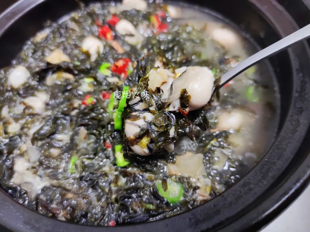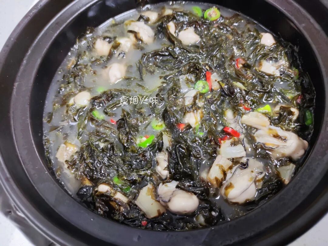 甘甜鲜美的紫菜海蛎煲就这样完成,没有太多的调味品,出锅后的味道一样的鲜甜。天气一天比一天冷了,煮好的饭菜没有及时吃就会凉了,这样一锅紫菜海蛎煲可别错过了,简单好吃好做,而且营养极高,不用担心菜很快就凉了。