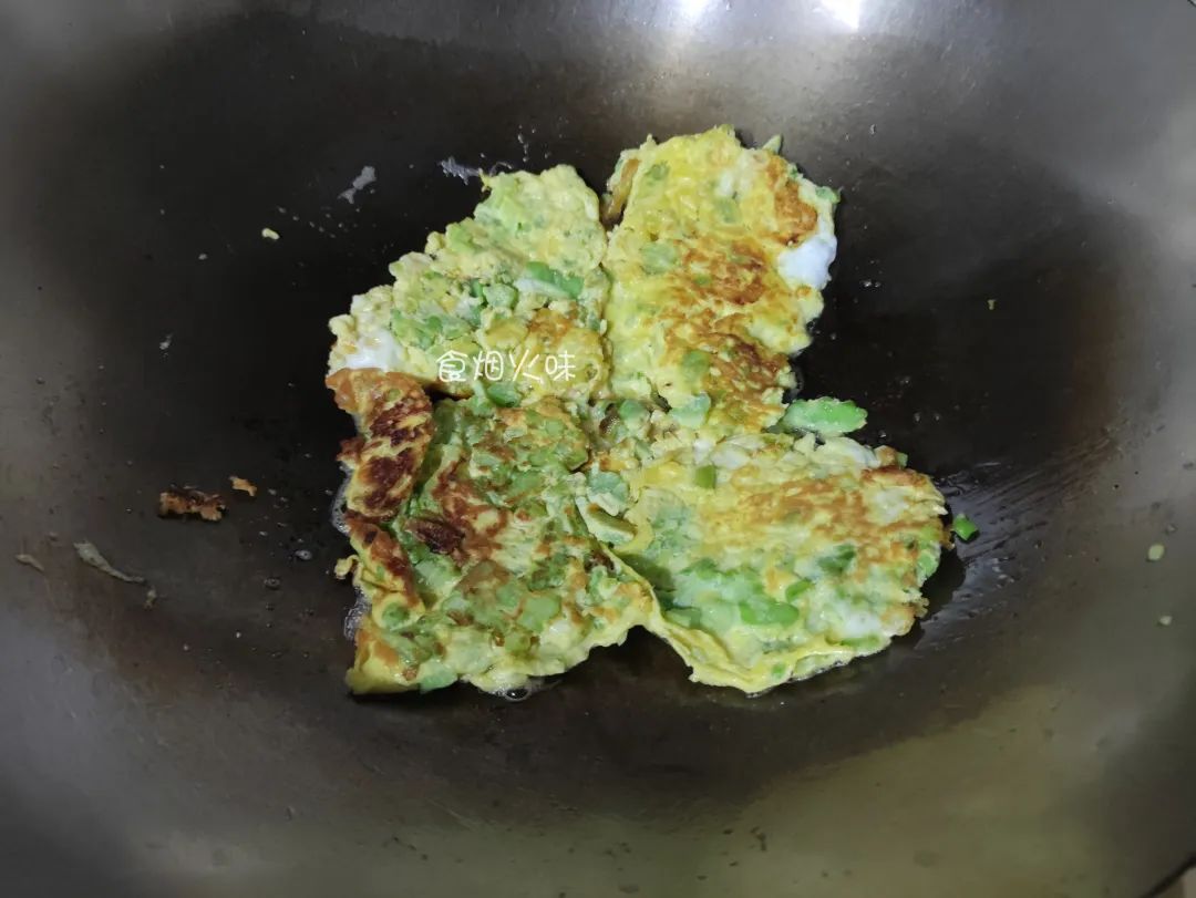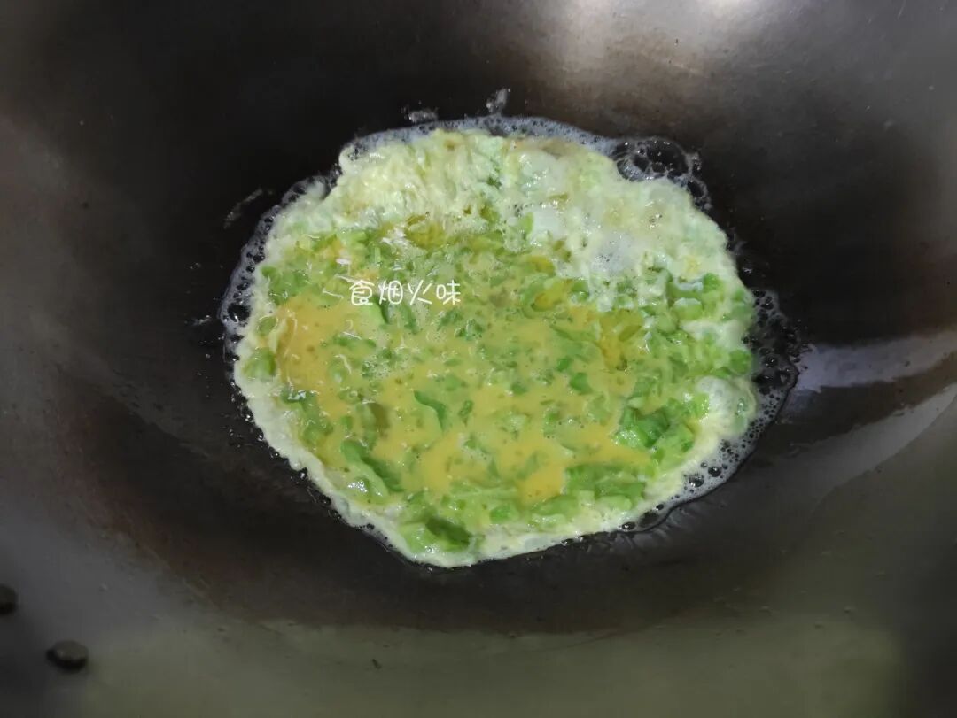 2.蛋液中加入苦瓜,不能太多,太多也不好煎成型。蛋液中加入适量的食盐,鸡精调味;