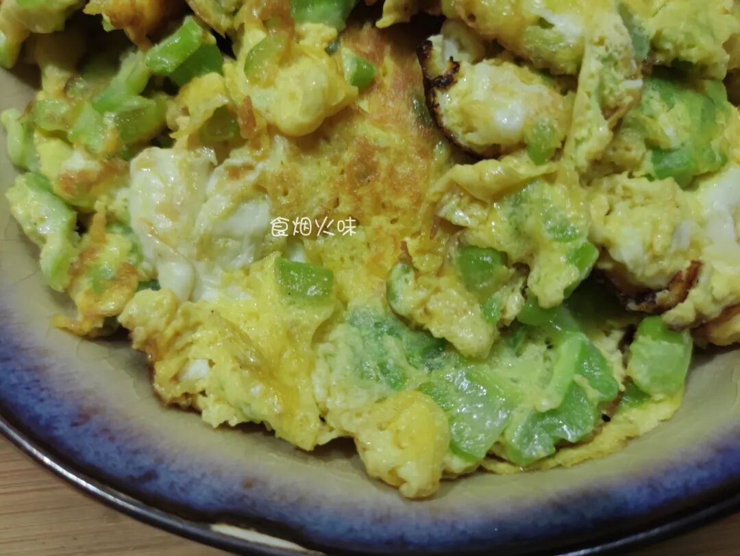 鲜香美味的苦瓜煎蛋就这样完成,有苦瓜清香味,还有鸡蛋的鲜香味。入口后咬一口,清爽怡人,如果还想要另外的味道,可以再加入番茄酱,味道特别棒。