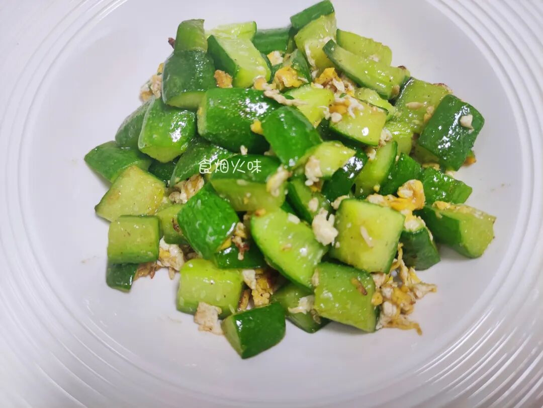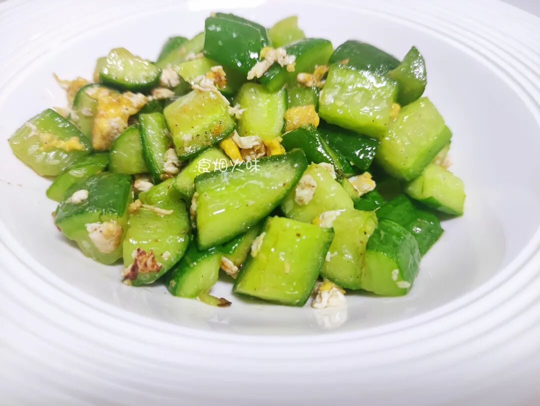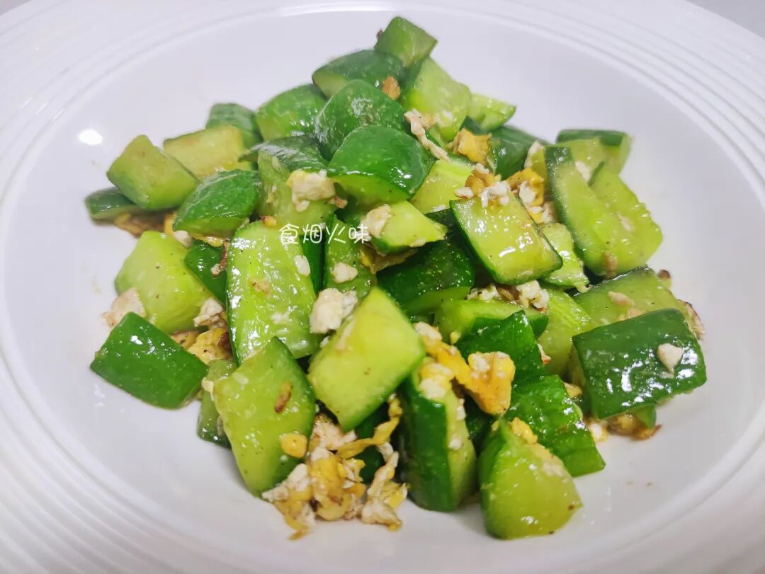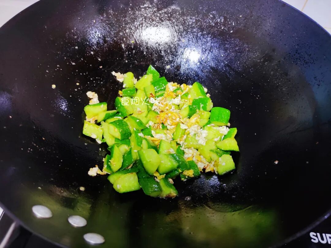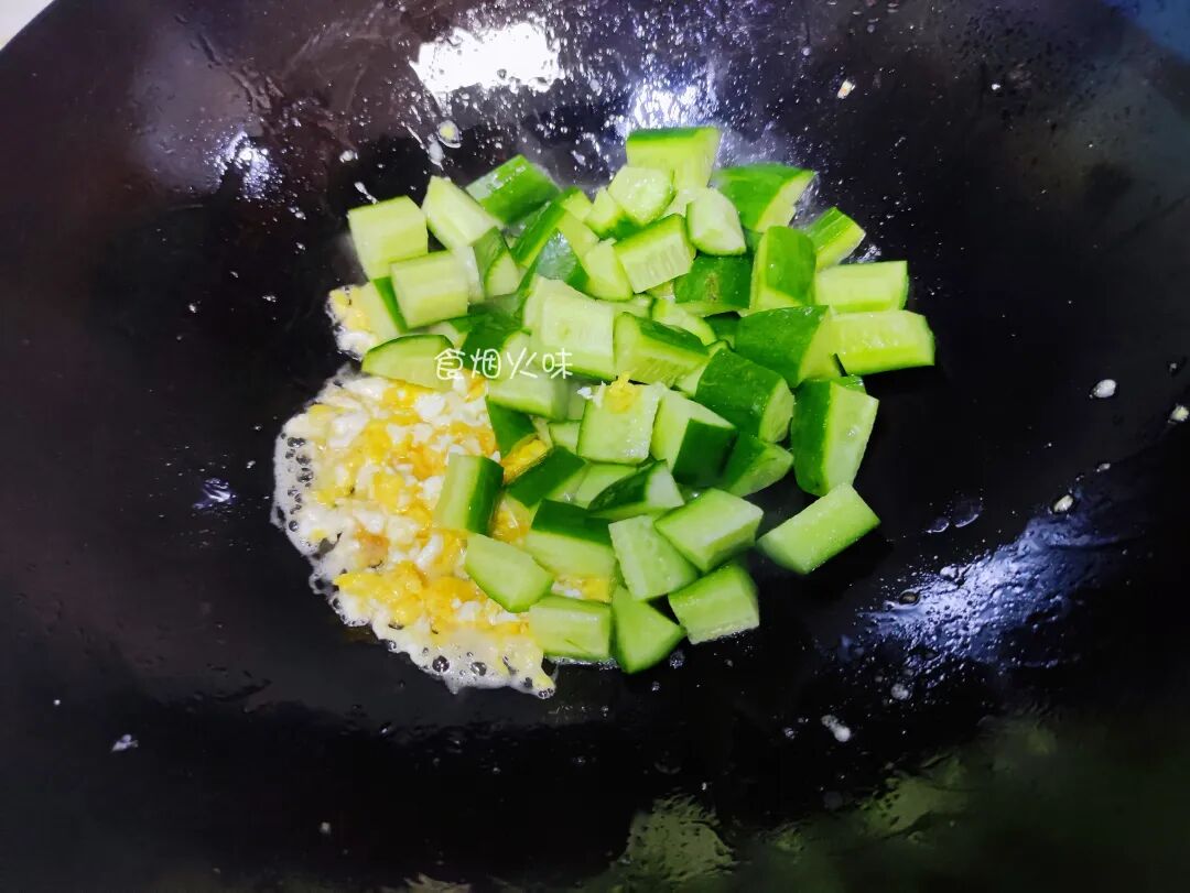 2.黄瓜下锅不用炒很久,差不多炒个1分钟左右即可。鸡蛋先放入锅中炒一下,这样出锅后的鸡蛋才不会有腥味;