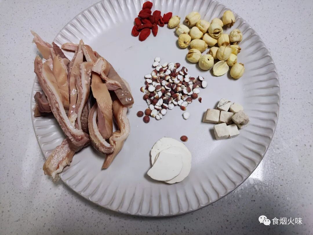猪肚,莲子,茯苓,淮山片,芡实,枸杞,食盐