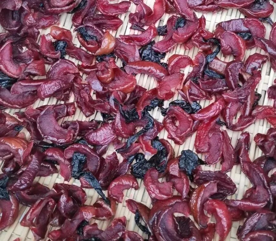 5.李子片在太阳底下晾晒后,体积跟颜色都会发生变化。李子片经过晾晒,体积变小,而且颜色变得很深。每天晒,有时间可以去翻面一下,加快晒干的进程。这些就是晒干后的李子片,准备一个干净的玻璃瓶,将晒干后的李子放入罐子中,想吃的时候取出适量,酸酸甜甜的很是开胃,而且它营养极高。夏季没食欲,多吃点它,生津开胃。自己做的吃得也放心,经济实惠。