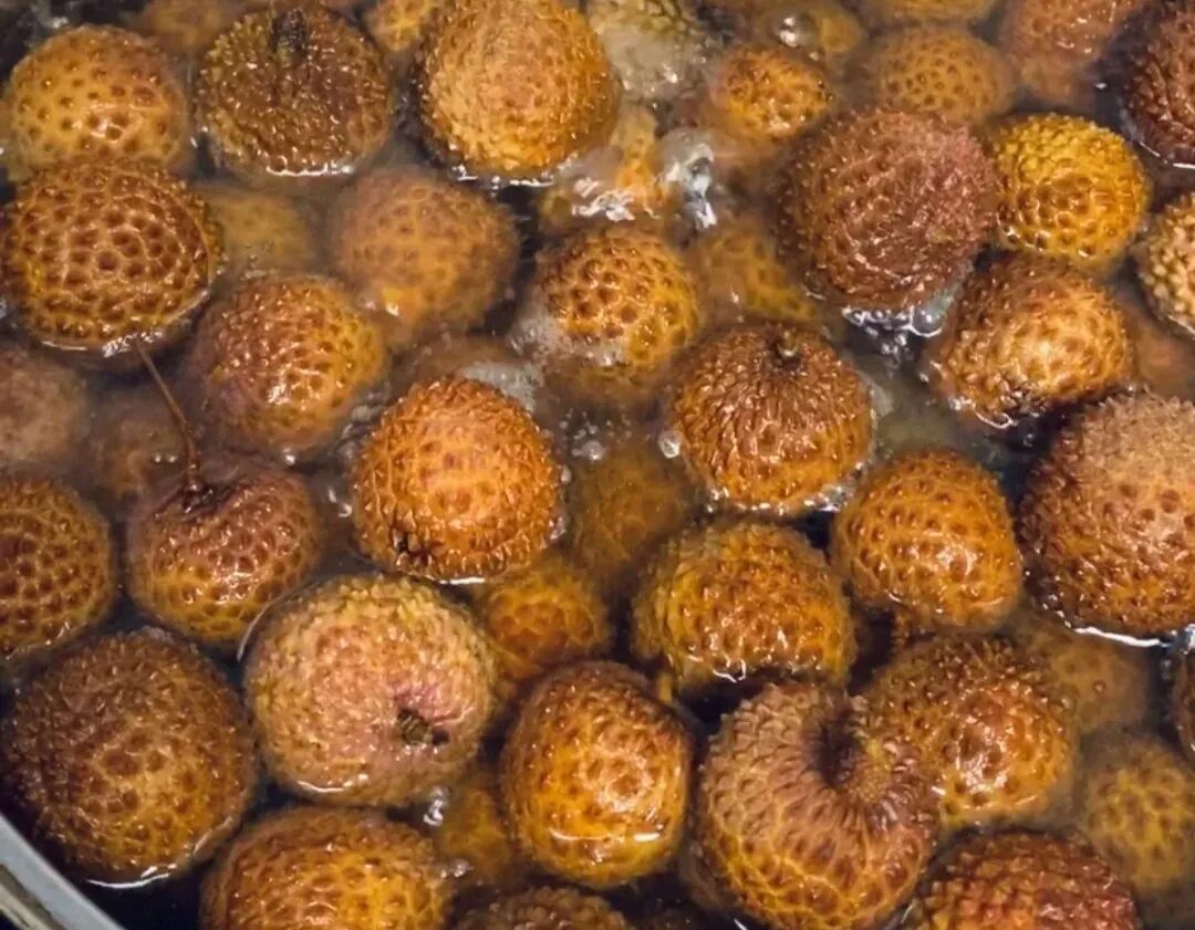 2.准备一个干净的锅,锅中加入适量的水。锅中的水开后,将处理好的荔枝倒入锅中。荔枝放在锅中焯水2-3分钟即可,焯水的时间不能过长,长时间的煮,会使荔枝爆开;