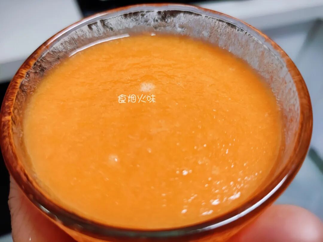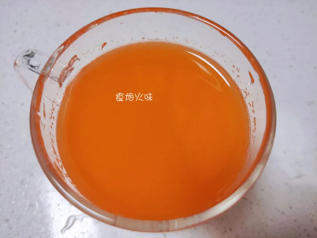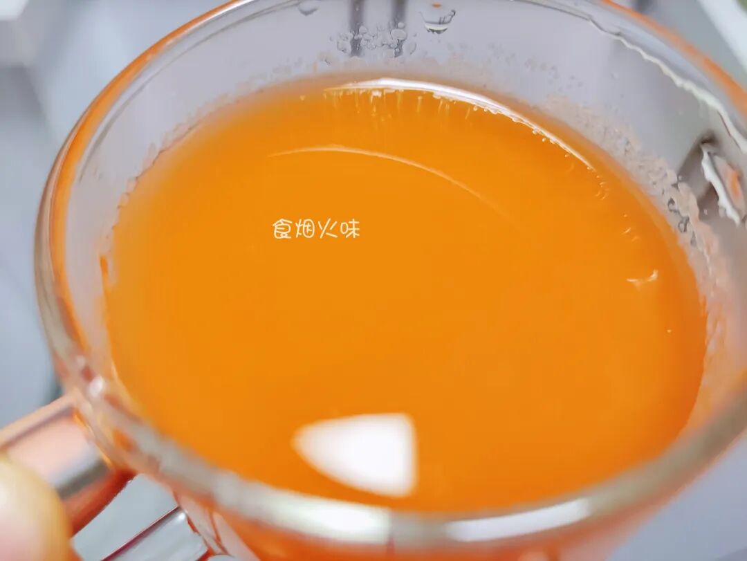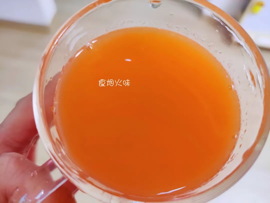 实在是介意的朋友们,可以将其过滤一下,将里面的果渣过滤出来。就像下图这样,纯果汁,很清甜。胡萝卜的腥味也非常非常淡,更多是雪梨的清香味。入口后,非常顺口。