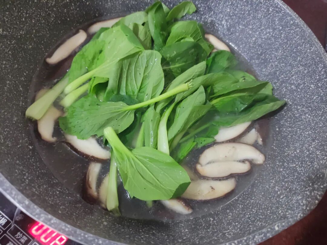 4.锅中的水开后,将洗净的青菜倒入,用勺子搅动下,最后加入适量食盐调味即可出锅。