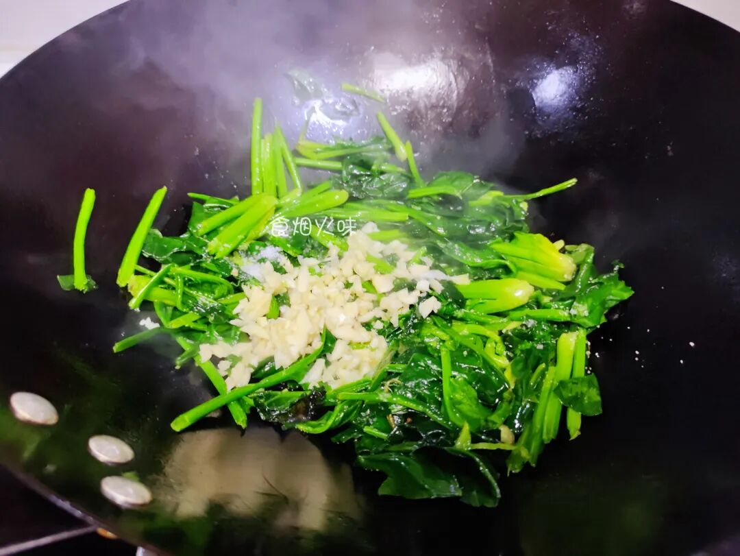 一份鲜脆爽口,而且色彩光泽诱人,口感鲜美,融合着浓郁的蒜泥,香味的菠菜,就这样子完成。这样做出来的菠菜不仅好吃,而且味道也特别的好。
