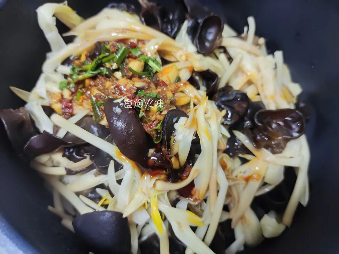 这样做出来的黄花菜吸收了酱汁,口感更加鲜美爽脆,木耳口感脆口,莴笋清爽多汁,三者食材放在一起拌,口感特别的好吃,味道也很鲜美。