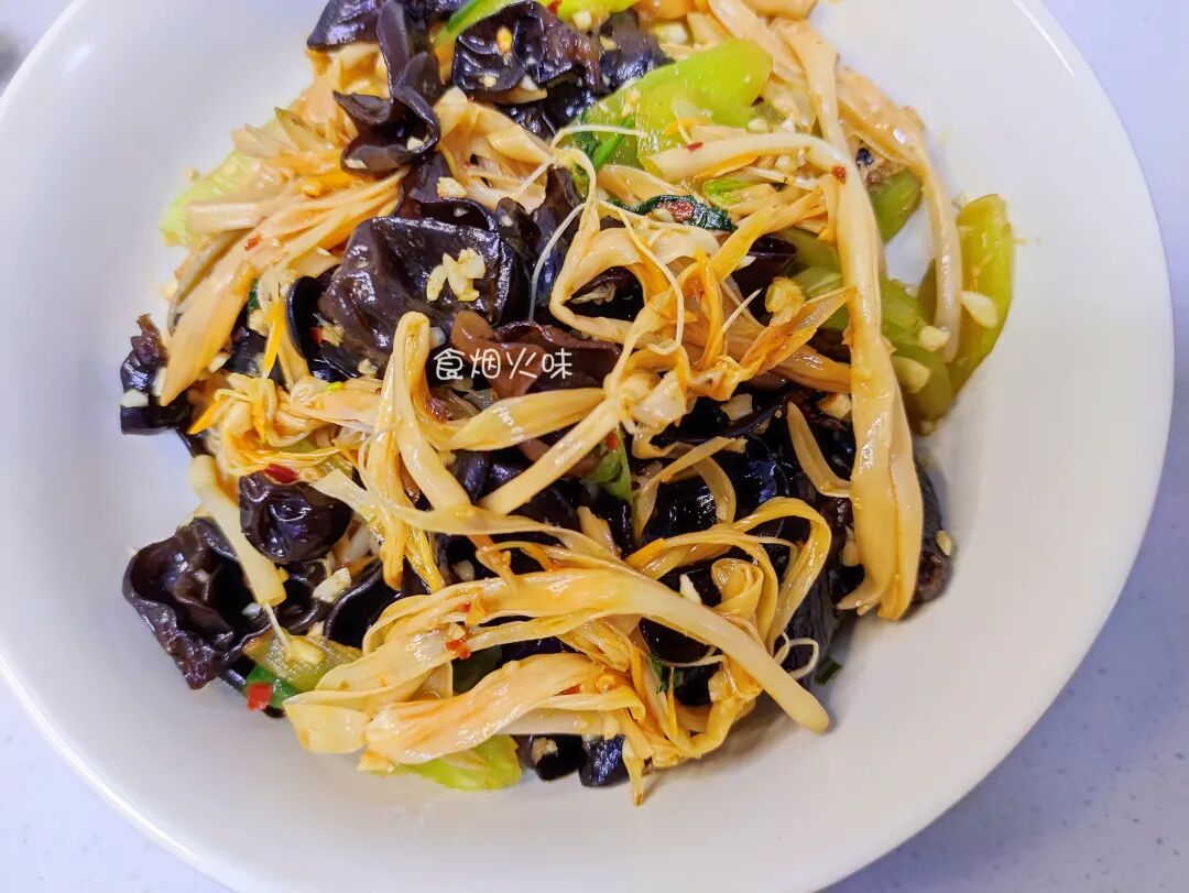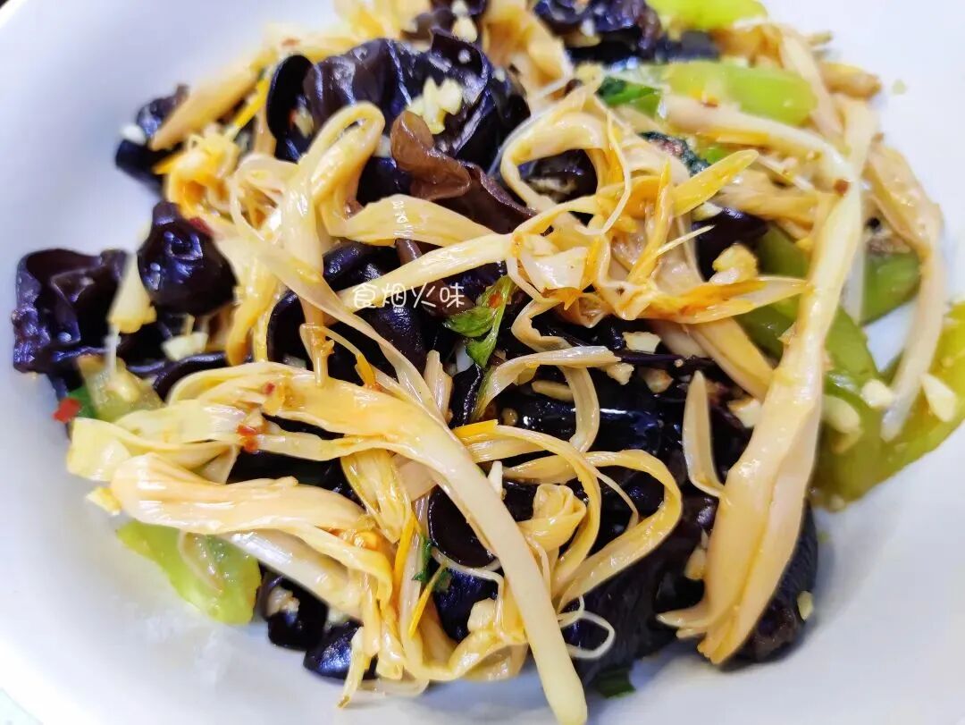 秋冬季节,天气比较凉爽,但也很干燥。天气干燥的话容易上火,这个时候可以多吃一点清爽的食材。黄花菜,木耳,莴笋三者就很搭,润燥清热,去火气,心情舒畅,晚上睡觉也容易入眠,睡眠好身体棒。