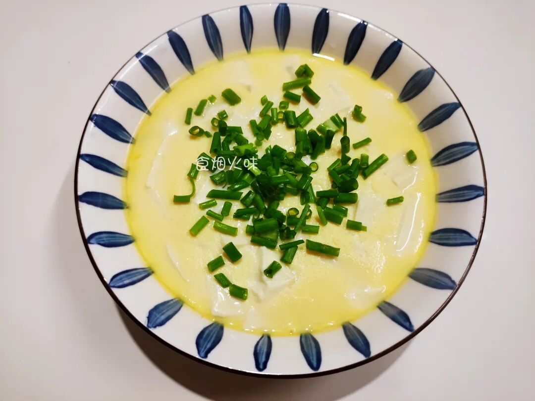 9.蒸好后的鸡蛋豆腐羹取出。