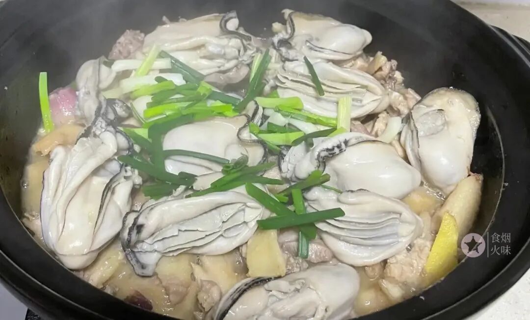 4.起锅加入适量葱花即可。生蚝煮熟后,生蚝的汤汁渗入鸡肉中,鲜甜细腻又美味。生蚝吸收了鸡肉汁,双重暴击,好吃到停不下来。