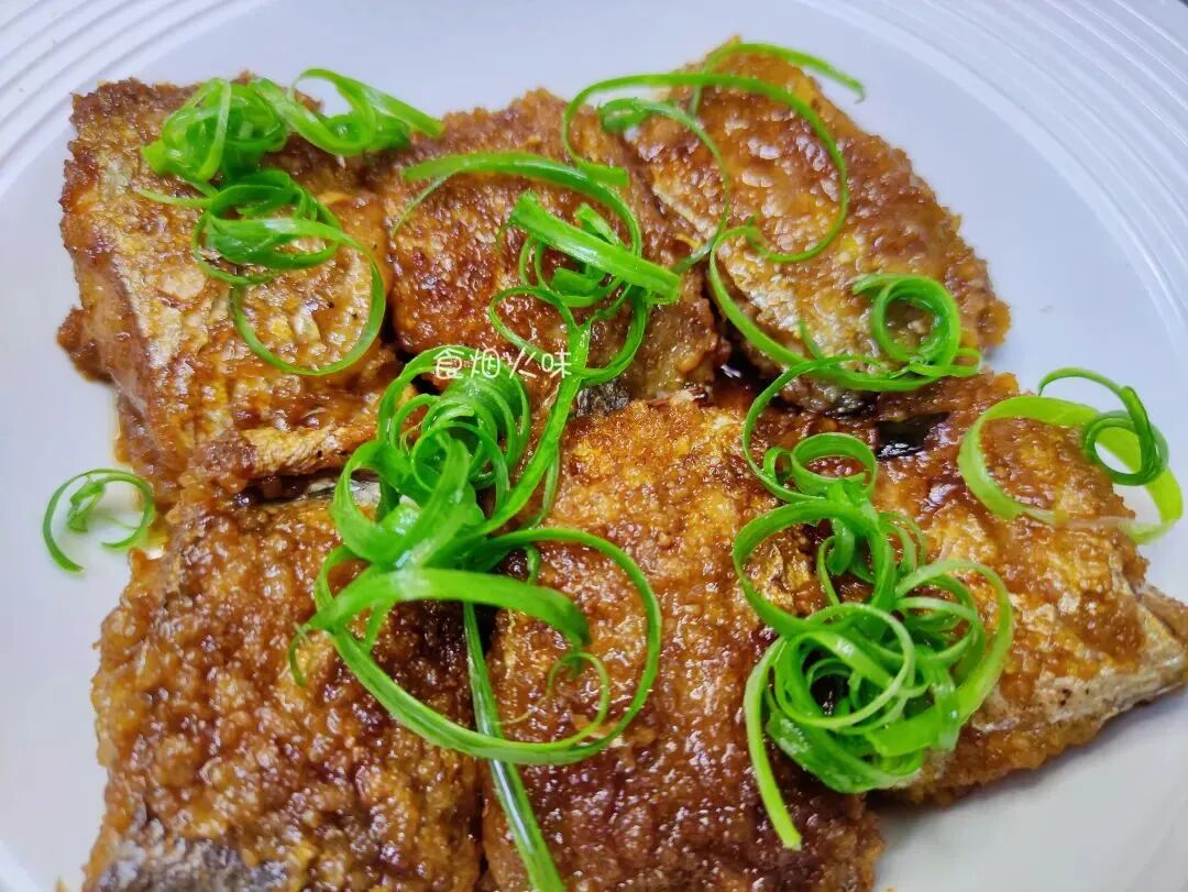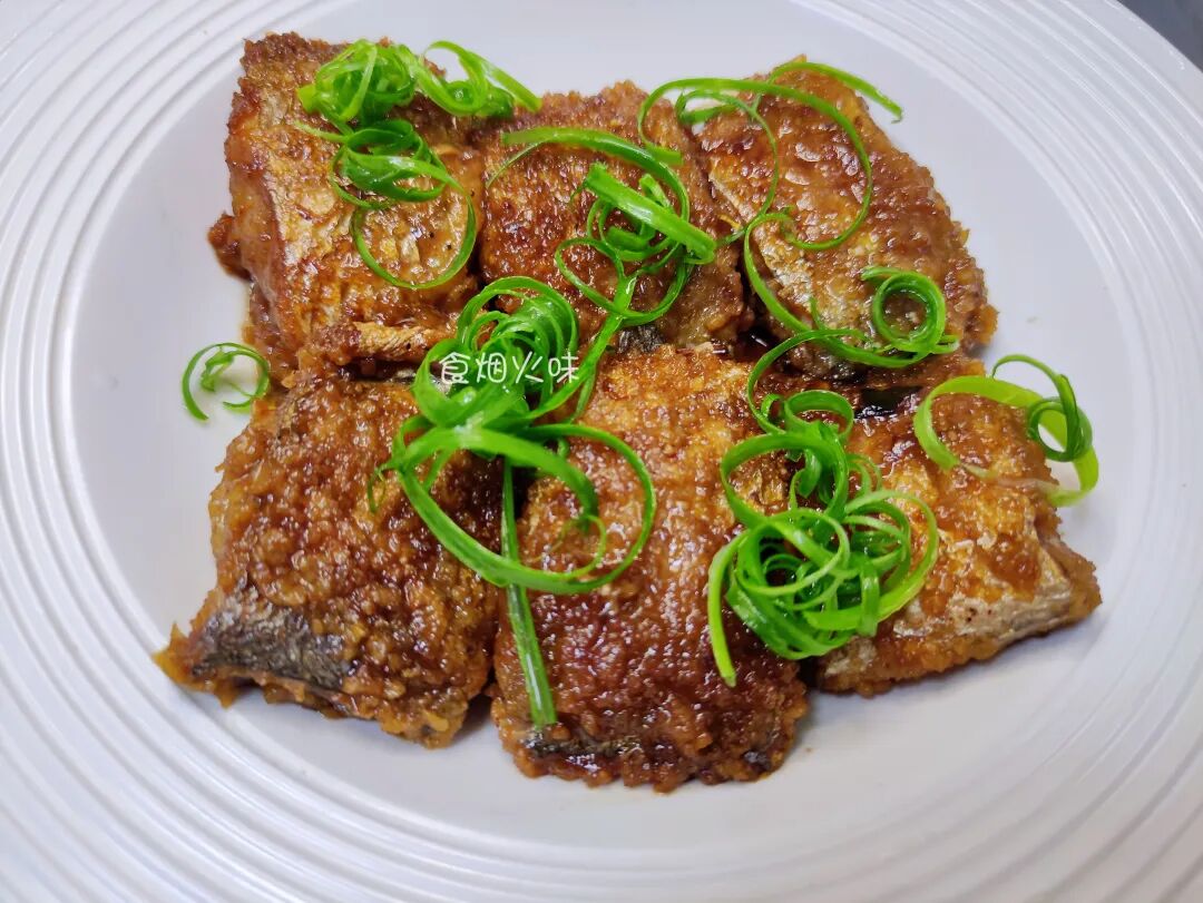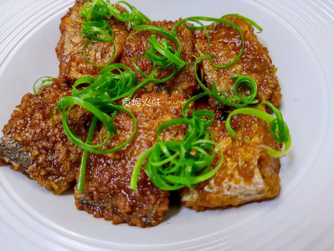 出锅的带鱼摆放在盆中,然后撒入刚准备好的葱花,这样不仅好看而且好吃。这样做出来的带鱼鲜嫩美味,口感好点,也不会有腥味,带鱼的刺很少,主要是中间跟旁边的一点刺,很适合老人跟小孩吃。