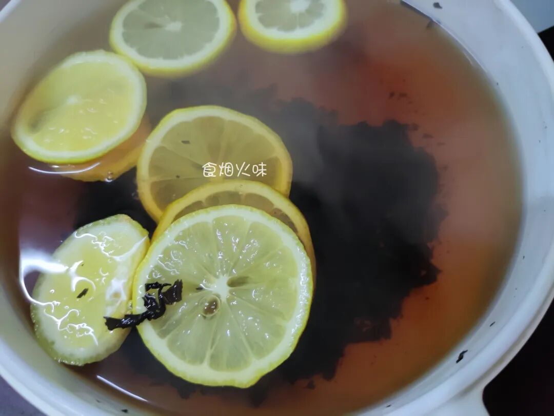 很快一份柠檬红茶,就这样子完成,有柠檬清香味,还有红茶叶淡淡的香,两者结合一起,味道鲜香浓郁。秋末冬初的季节,天气干燥,水分少,要多多补充水分,补充维生素,多吃蔬菜水果,多喝点水。这样的一道柠檬红茶就非常适合,补水润肤,天气冷的时候,适当吃点酸对肝脏也有很好的保护。