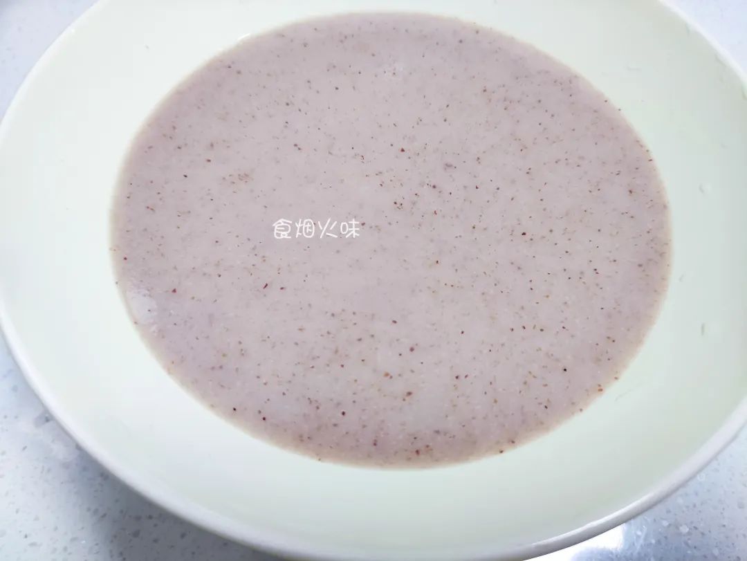 4.紫薯是紫色的,在煮的时候形成漂亮紫色的汤,非常好看。一早起来,看着这样的一份紫色汤,脑袋中迸发的松松喜悦感;