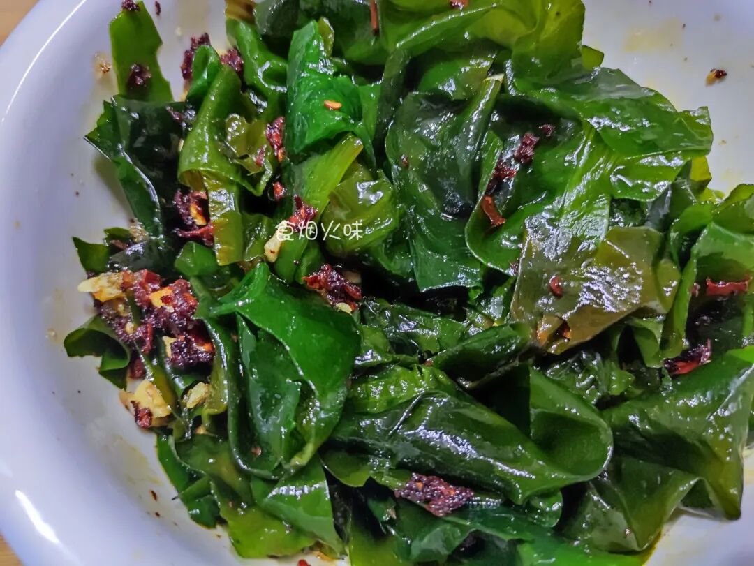 5.煮熟后的裙带菜捞出放在冰水中过凉,这样处理可以使得裙带菜的口感爽脆;