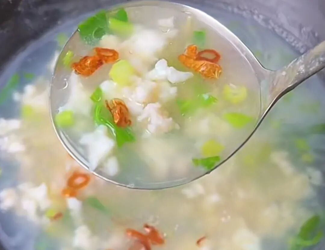 5.用勺子将它们轻轻推开,锅中的水再次开后,加入食盐,胡椒粉,还有葱花点缀,适量的葱头油增加香味。味道如果可以的话,就关火出锅。