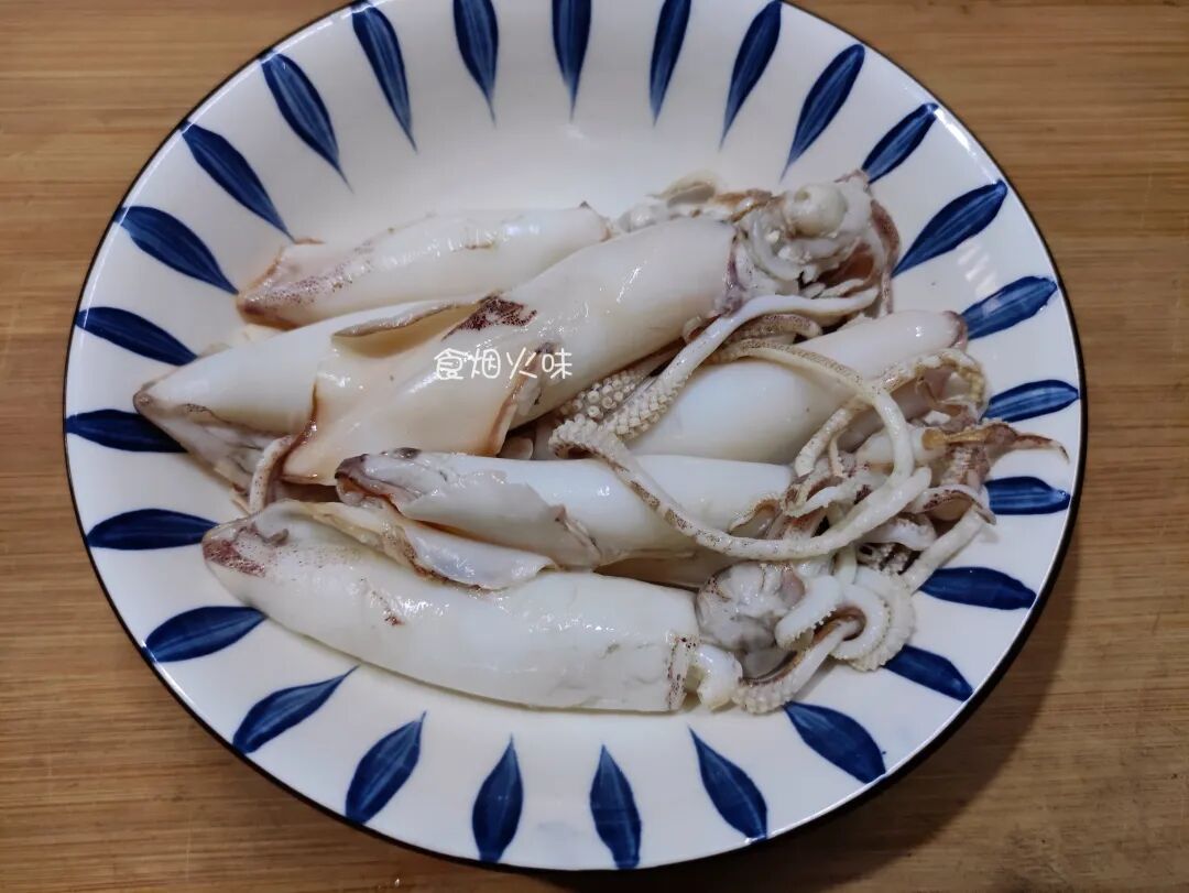 3.买回来的小管放在盆中,里面加入适量的水,用水将其表皮的清洗干净,特别是外面的那层膜,给它撕掉。这些小管是焯水过,所以外膜很容易撕掉;