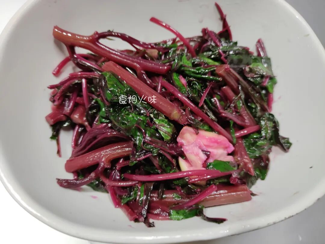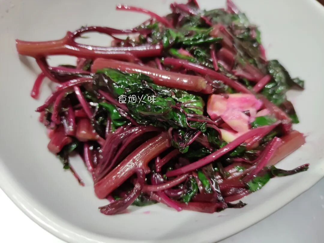 鲜美清脆爽口的蒜炒苋菜就这样完成。出锅后的苋菜味道特别鲜美,暗红的鲜红的颜色让人看着也很有食欲。这道菜的做法很是简单,不仅下饭,营养也是极高。喜欢的朋友,这道美食不要错过了。大火快炒,几分钟就出锅,很适合上班族。