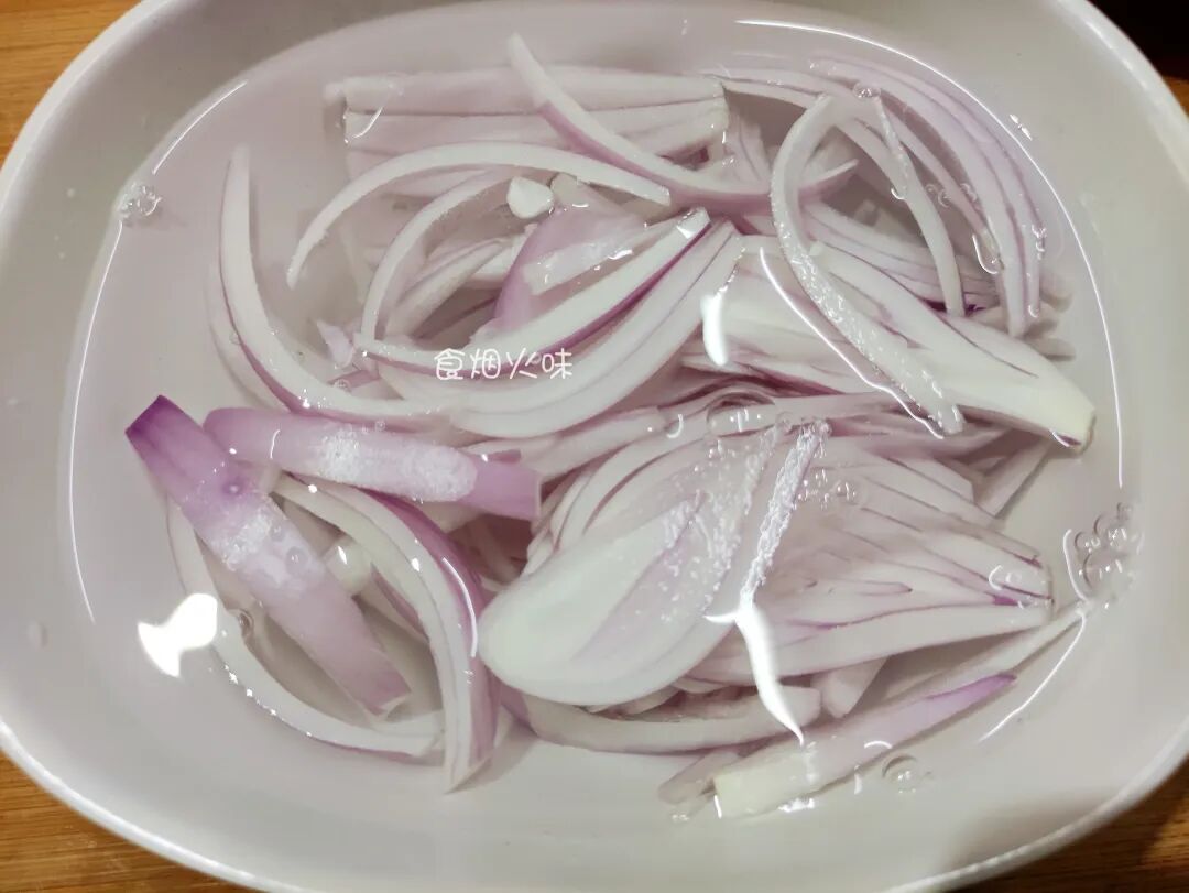 2.洋葱中本身就有辛辣味,凉拌过程中,要将其放在食盐水中浸泡。食盐水浸泡后会减弱里面的辛辣味,吃起来口感爽脆不辛辣;