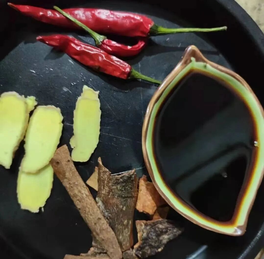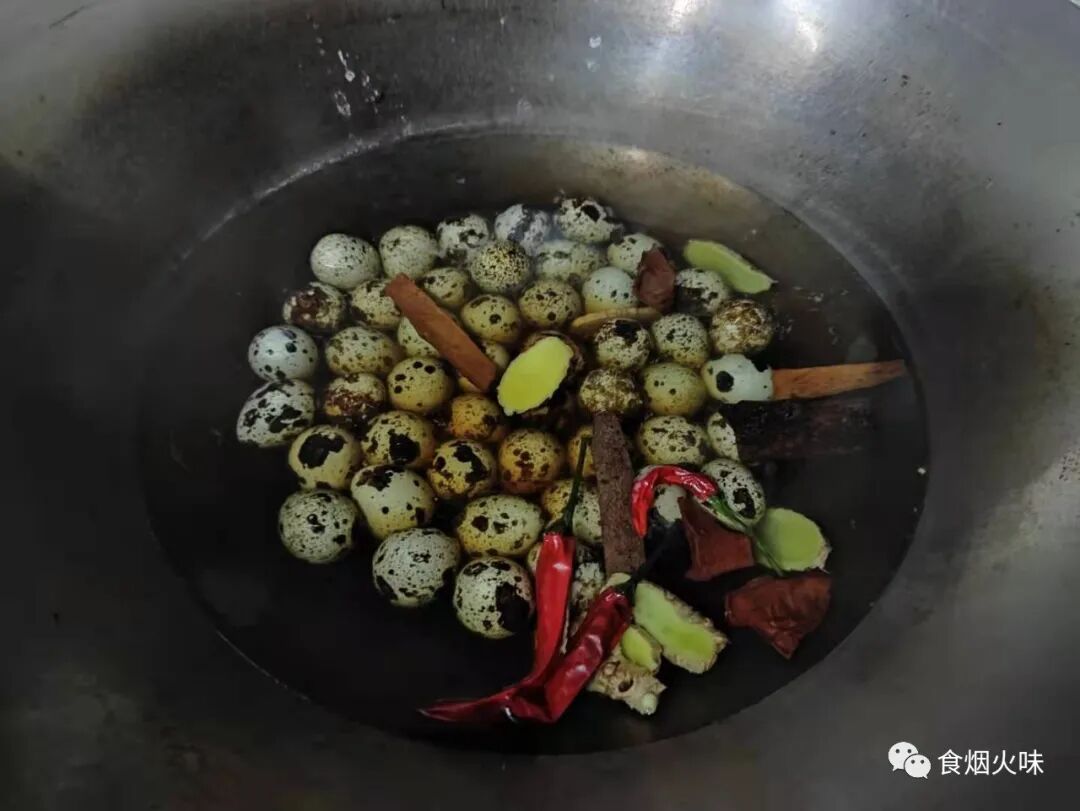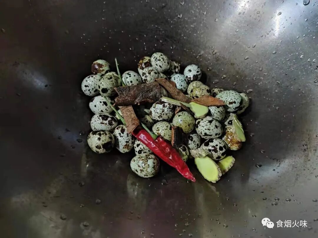 鹌鹑蛋,花椒,桂皮,辣椒,八角,姜片,酱油,盐巴。