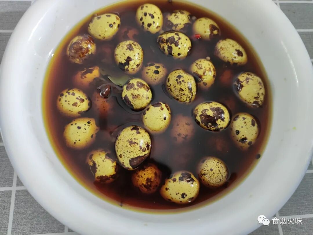 3.鹌鹑蛋煮熟后,不要直接吃,放在卤水中浸泡2-3小时,这样的蛋出来更加入味,口感好。