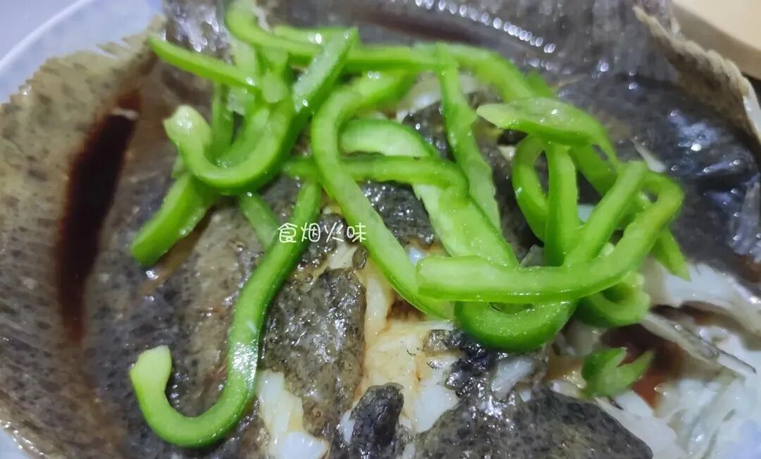 4.蒸煮后的鱼取出来,将里面的汁水倒掉。青椒放在清水中冲洗干净,将它们切成细段,然后放在鱼身上。倒入适量的酱油,一旁备用。准备一个干净的锅,锅中加入适量的油,将锅中的油烧热,热油淋在鱼身上,然后即可食用。