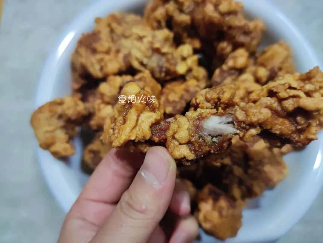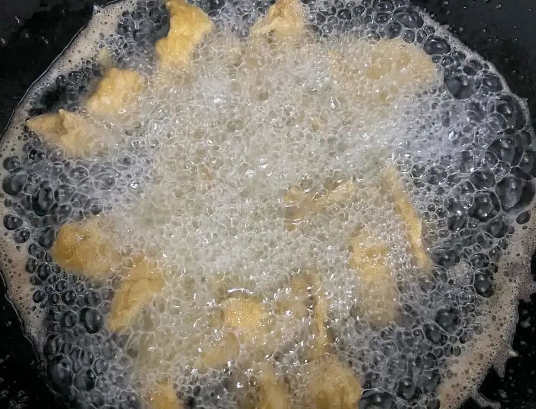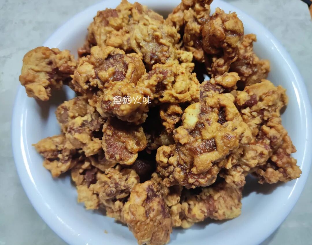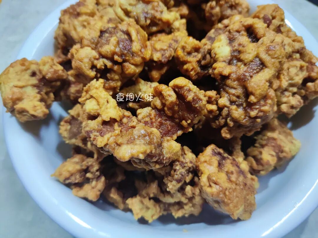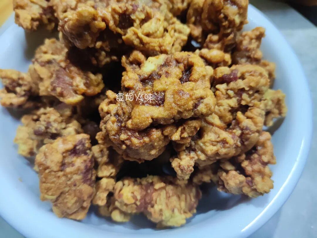 3.加入的粉要用地瓜粉跟淀粉两者相结合,炸出来酥脆好吃。炸好一遍后,再倒入复炸一下,更酥脆,而且不易回潮。