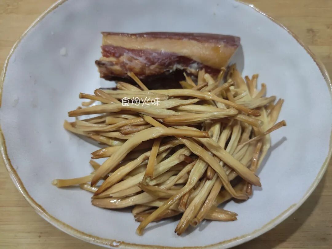 腊肉,黄花菜,食盐,鸡精,蚝油,食用油