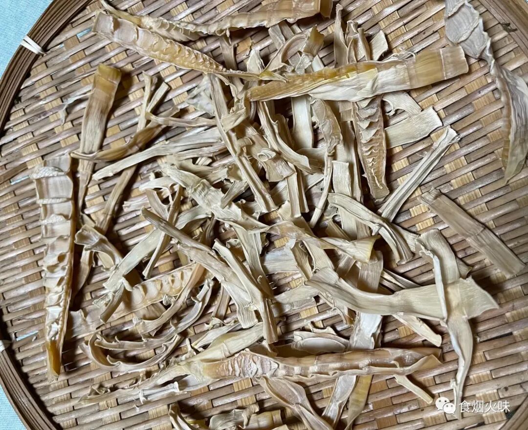 3.煮熟后的笋开锅,将它们捞出,放在太阳下进行晾晒。晒的过程中要翻动一下,差不多晒三天,体积缩小,捏着硬硬的就可以装袋子中保存。