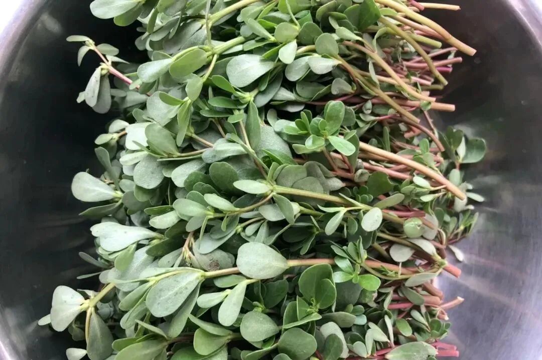 1.马齿苋摘回后放在盆中,将里面的杂草跟老筋挑出来,随后放在水中,将它们清洗干净,洗净后的马齿苋捞出放在盆中沥干水分;