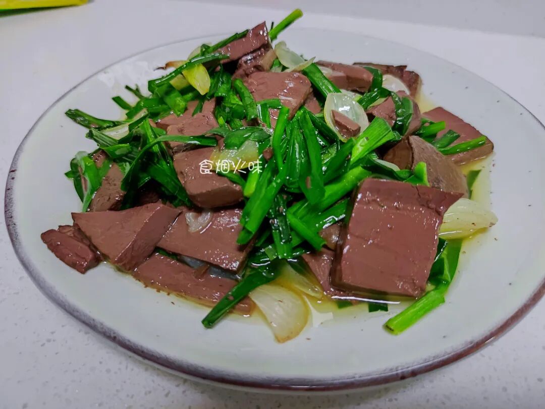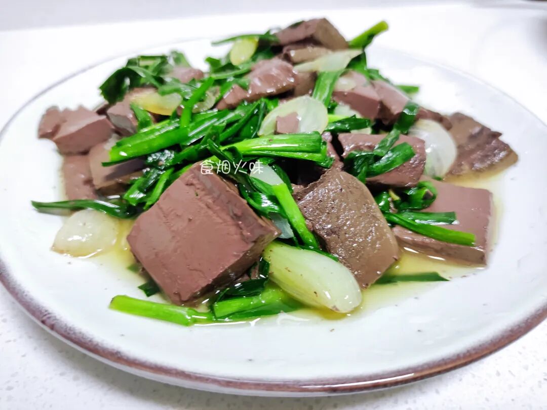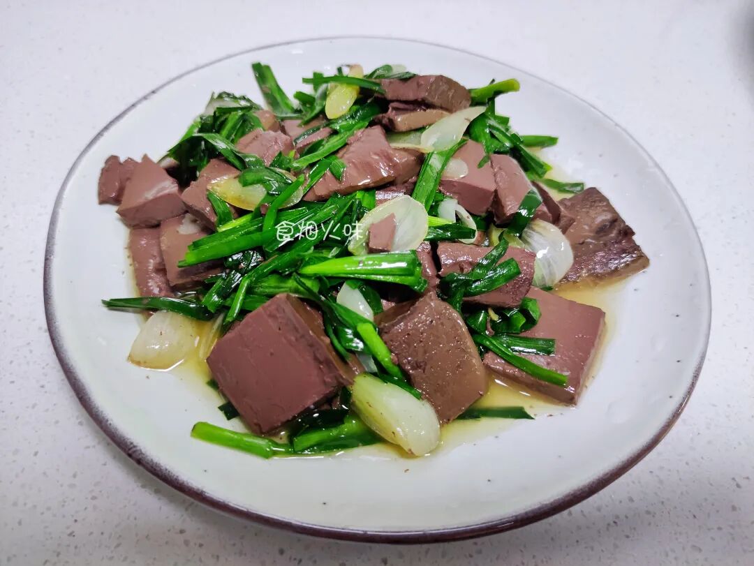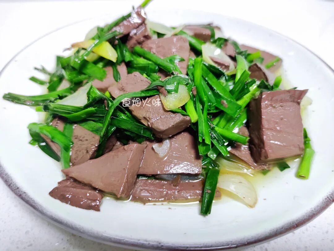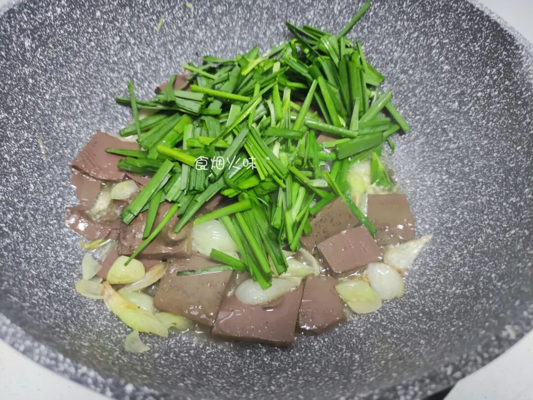 2.炒鸭血跟韭菜是绝配,鸭血的嫩滑融合韭菜的鲜香,口感好极了,而且增加鲜味;