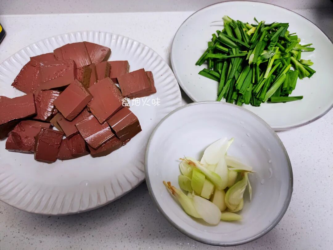 鸭血,韭菜,野葱头,食盐,鸡精,食用油