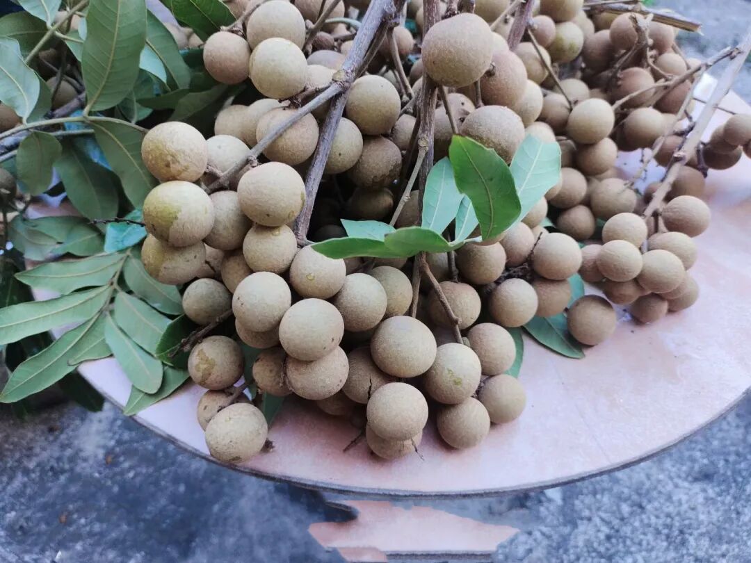 今年是个丰收年,龙眼,荔枝,芒果等都是大丰收。家门前的几棵龙眼树上结满了果实,一串串地挂满枝头。前段时间又经常下雨,所以今年的龙眼长得大水分也很多,鲜美多汁。龙眼的季节也很短,成熟的龙眼没有及时摘回家,一段时间就会掉落满地。龙眼又称为桂圆,是亚热带水果。