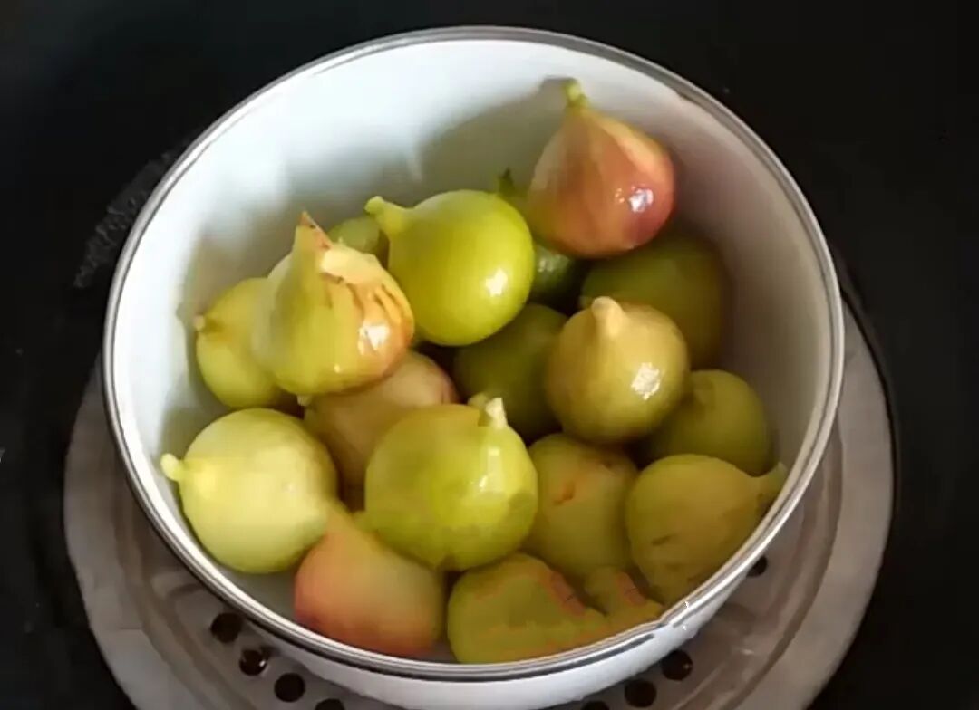 2.需要准备一个干净的锅,加入适量的水。放上一个蒸笼屉,将洗净后的无花果放在蒸笼上,开火。锅中的无花果蒸煮5-8分钟,蒸好后盛出;
