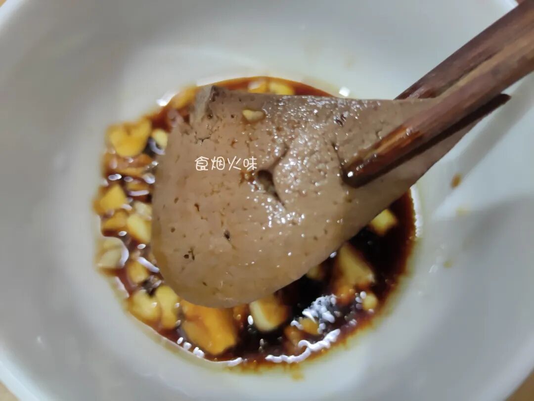 3.煮好后的猪肝,不着急吃,可以浸泡在里面一段时间,使其更加入味。