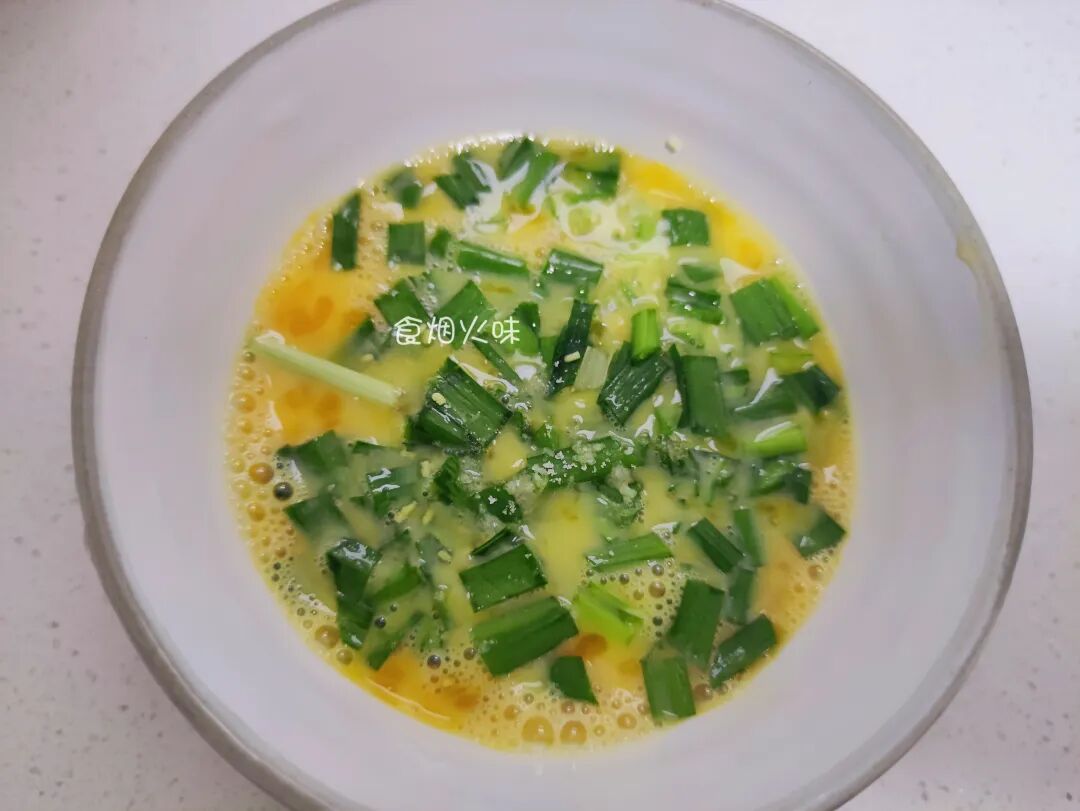 2.准备两个韭菜,也可以选择用葱花。将它们冲洗干净,然后放在案板上切成细段,切好放在碗中,加入食盐,鸡精,食用油,水用筷子将它们搅拌均匀,放在一旁备用;