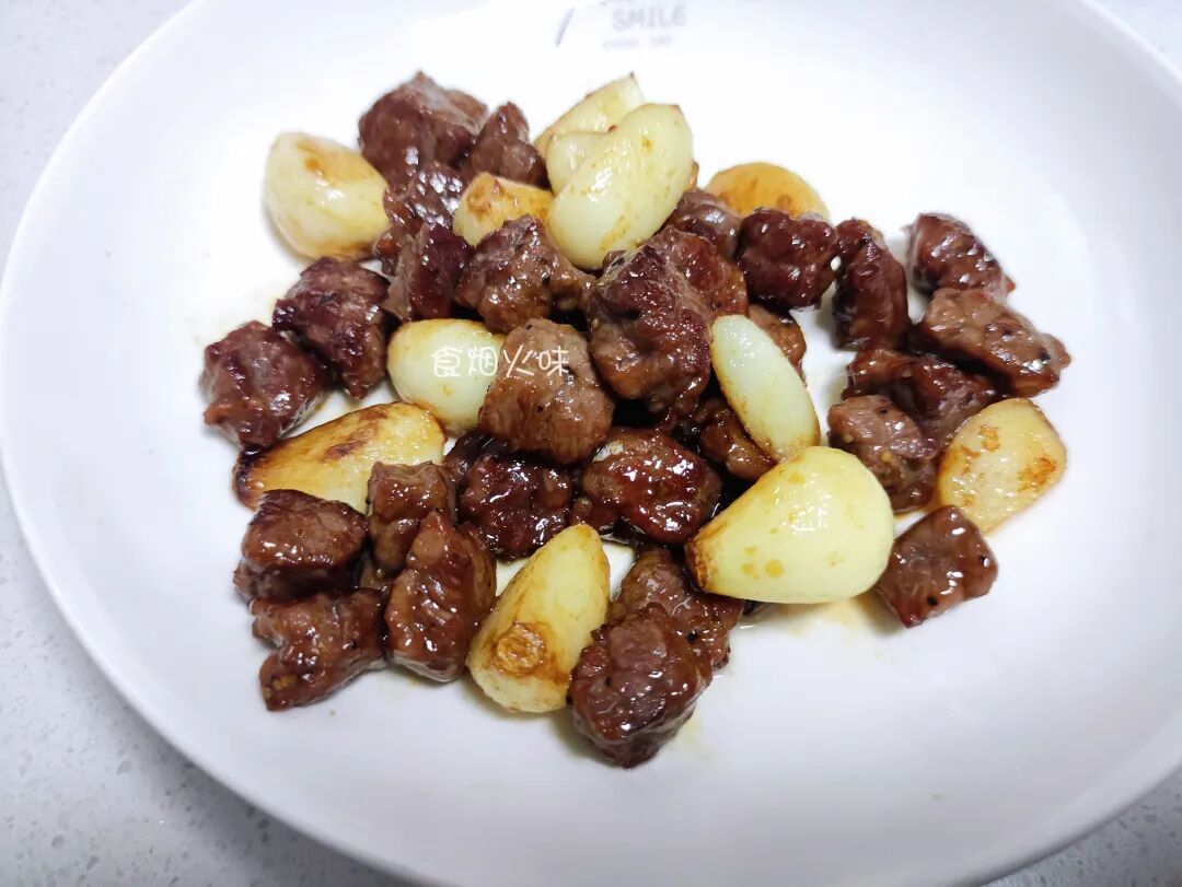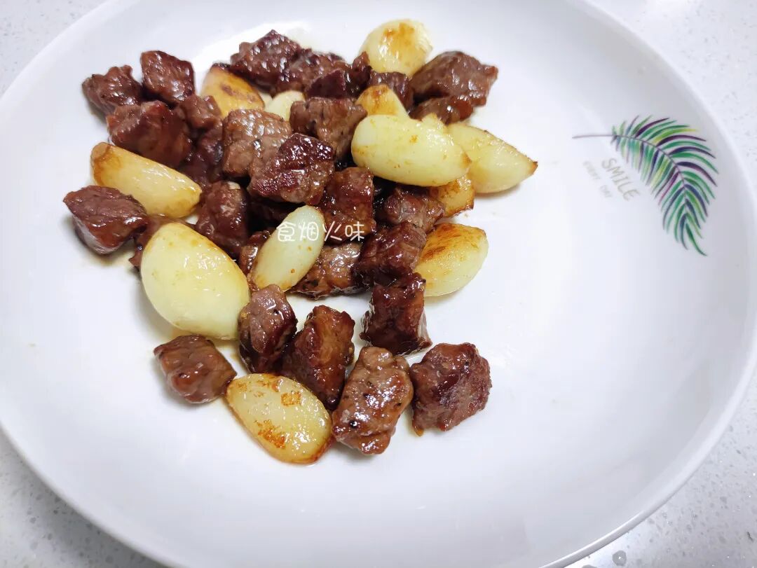 大蒜经过煎煮,出锅后软糯鲜美,不会再有辛辣味,绵绵的比新鲜的好吃。而牛肉丁口感嫩滑鲜美,特别鲜嫩,融合着大蒜的鲜味,好吃极了。吃饭的时候,有这道菜,饭都不愁吃不完了。