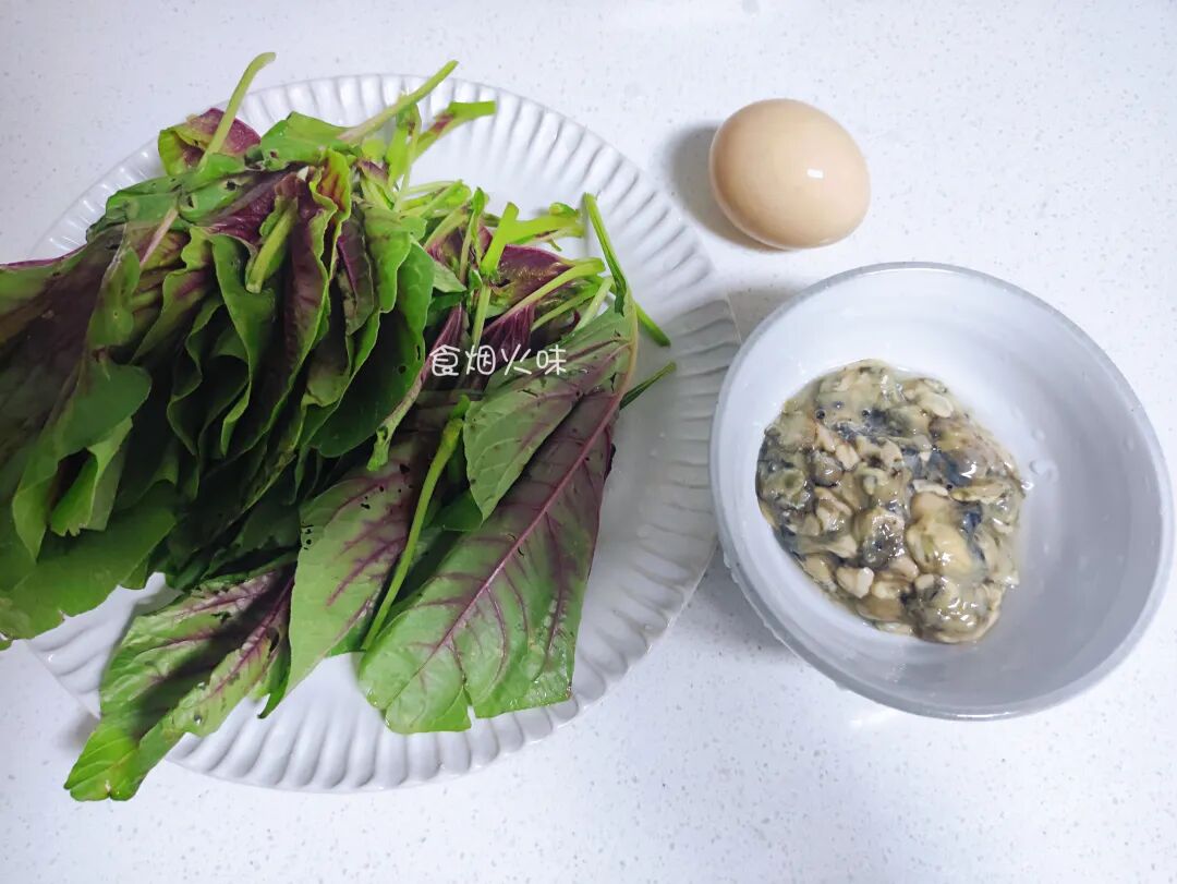 苋菜,鸡蛋,海蛎,食盐,鸡精适量,还有食用油