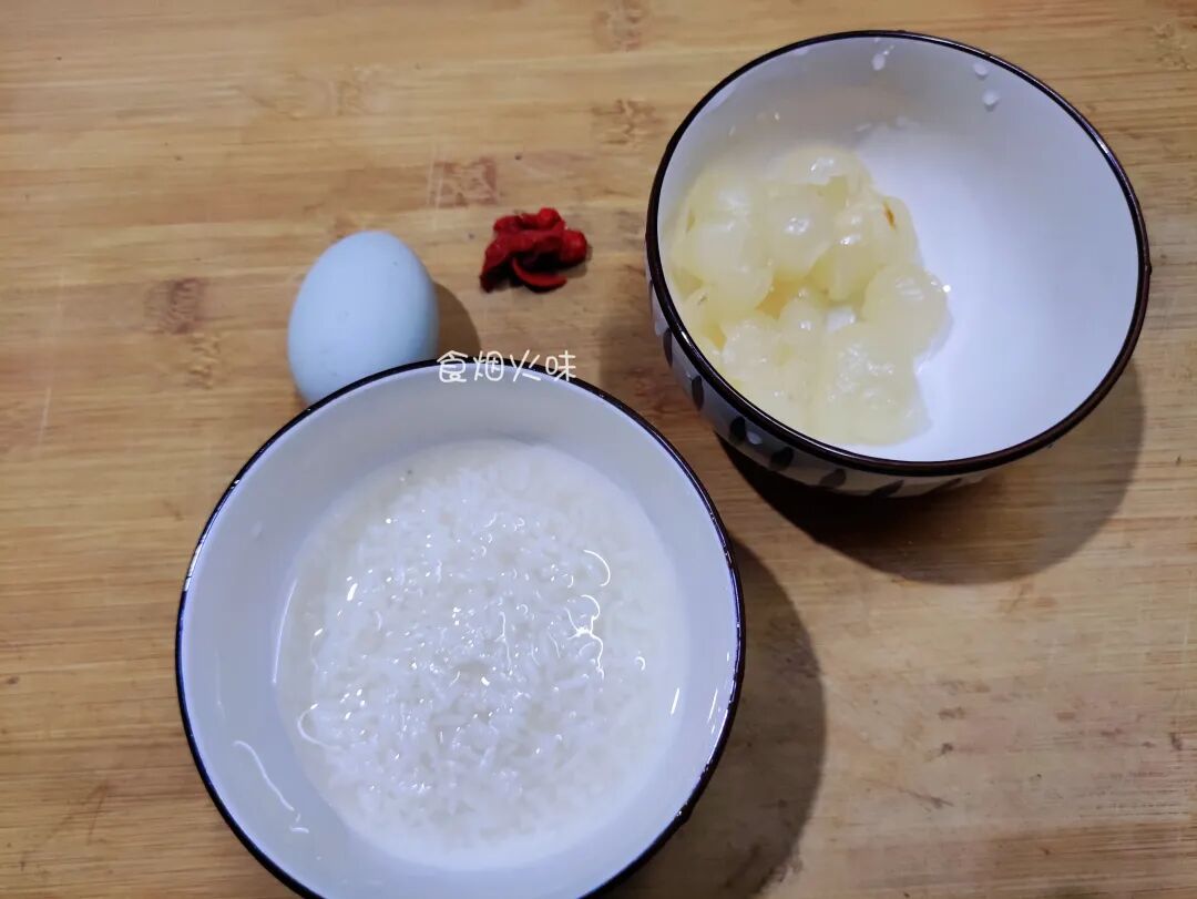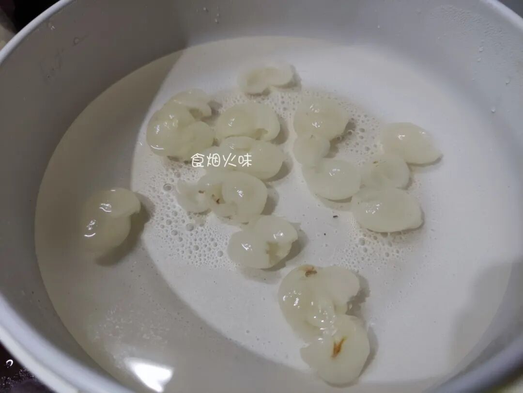 1.准备适量的龙眼,将龙眼用清水冲洗其表面,然后用手将其表面去掉,然后再把龙眼肉挑出来,取出来的龙眼肉再次洗净。枸杞放在清水中,加入面粉,将其表面清洗干净,洗净后放在一旁备用。准备一个干净的锅,锅中加入适量的水,将洗净后的龙眼肉倒入锅中;