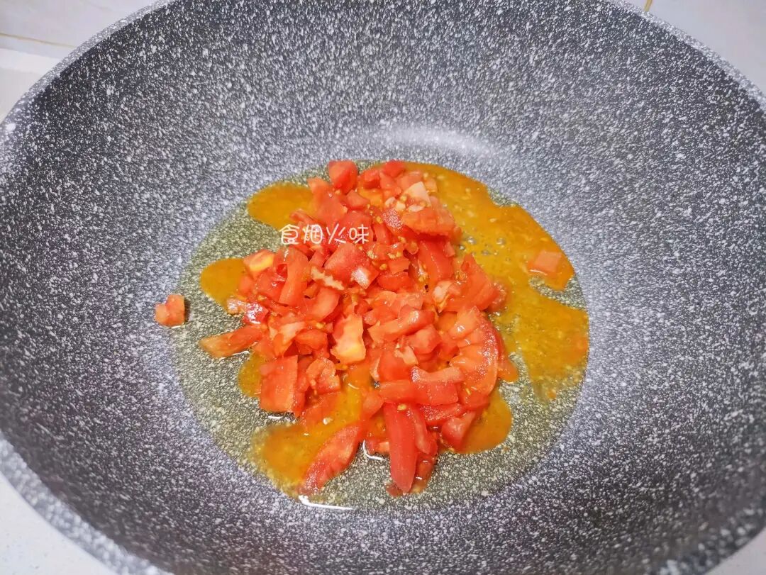 2.这道菜适量的西红柿,出锅后的汤汁鲜美,拌饭超赞。