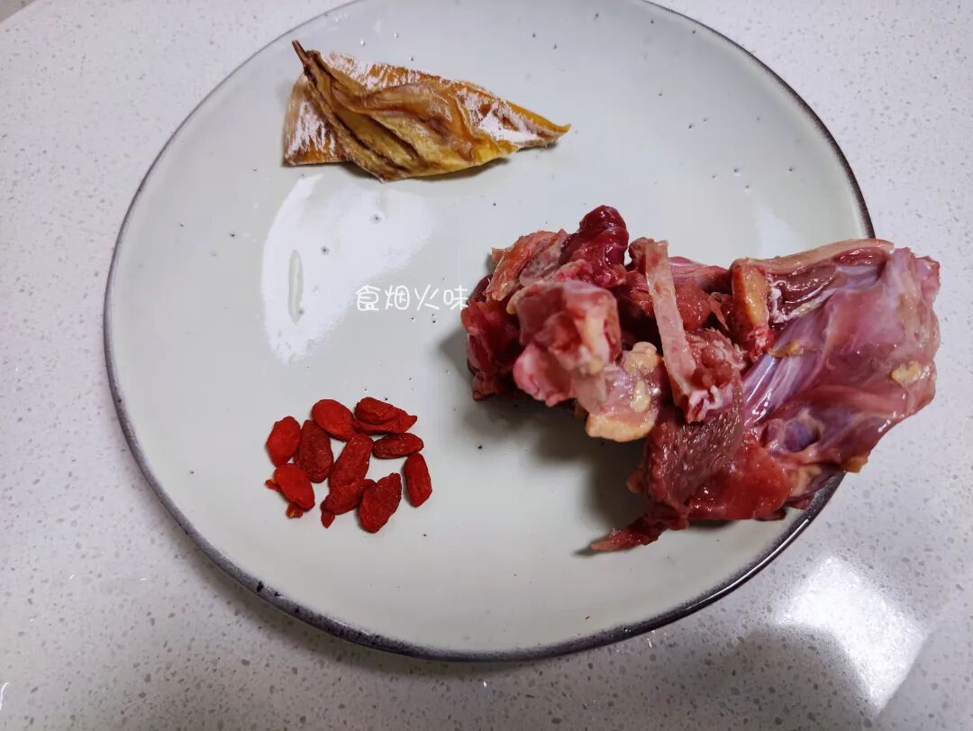 鸭肉,枸杞,鱿鱼母,食盐,鸡精,食用油,最后我还加了羊肚菌
