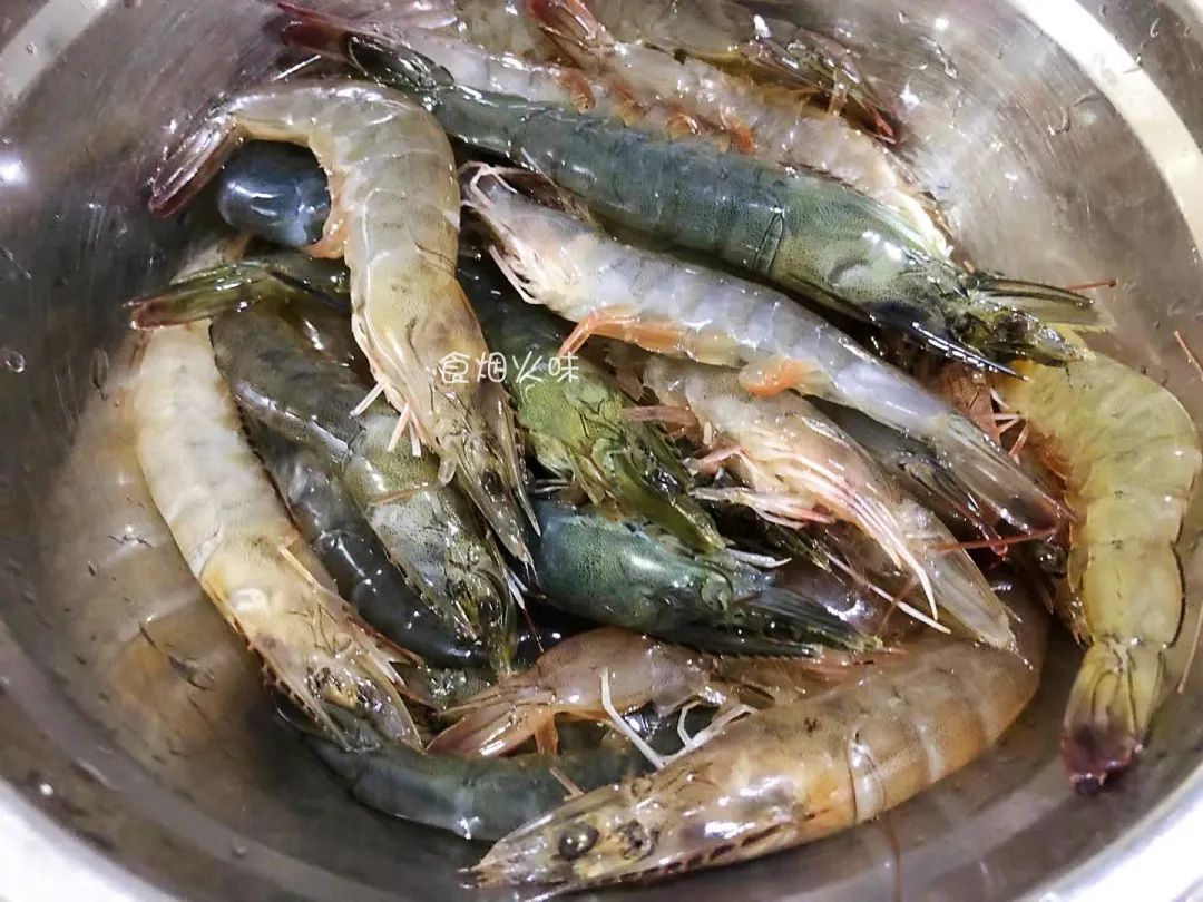 1.买回的新鲜虾用清水洗净,用牙签把虾线挑出来,随后再放入水中清洗干净,洗净捞出备用。