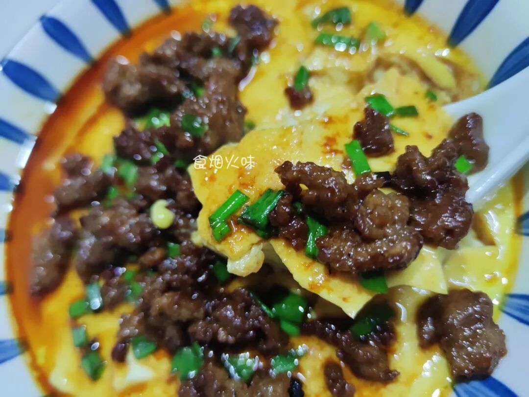 鸡蛋,豆腐,小葱,牛肉,食用油,食盐,酱油,淀粉