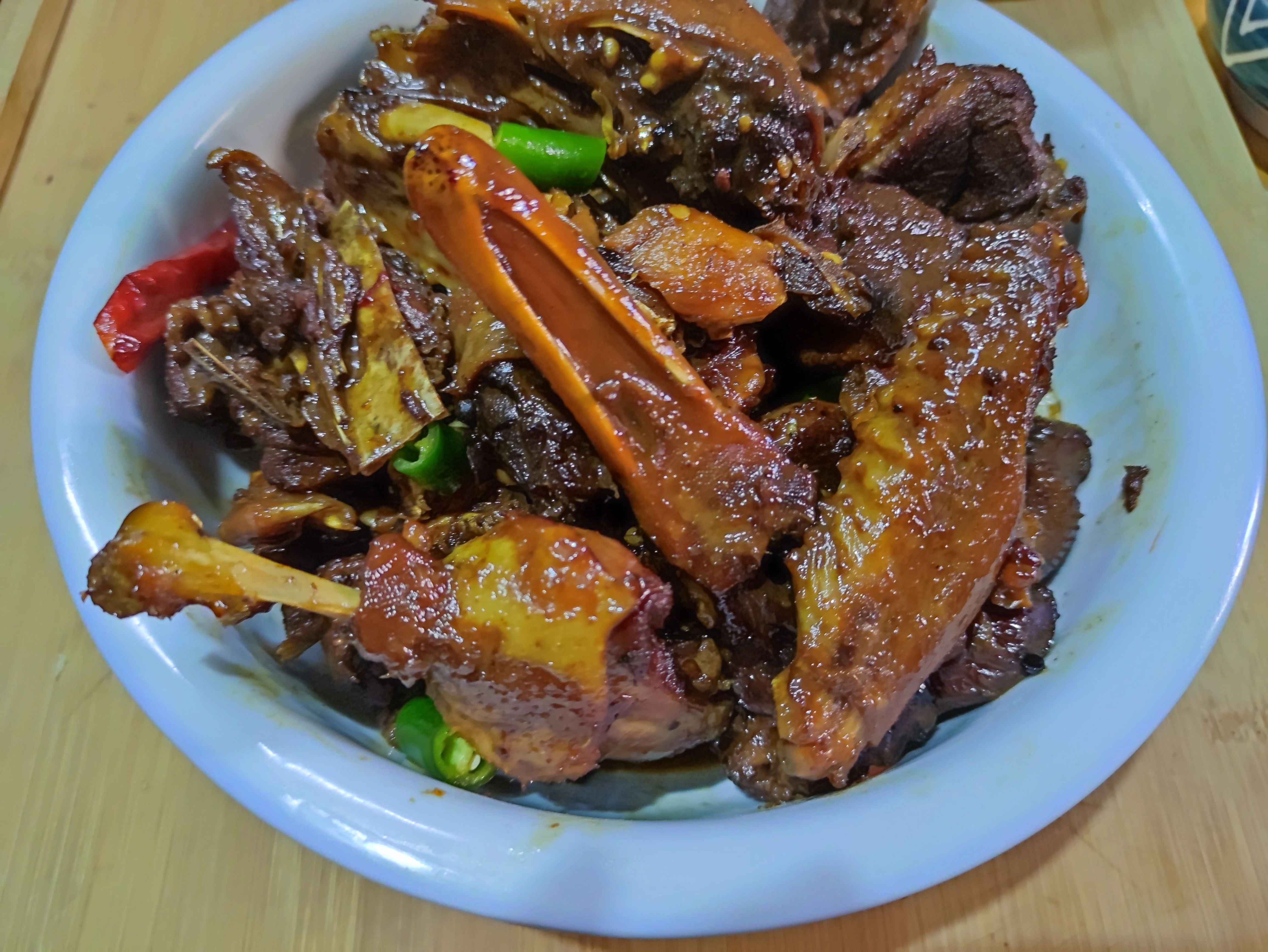 鸭肉1只,花椒1小把,干辣椒适量,生姜3块,白糖3勺,啤酒400毫升