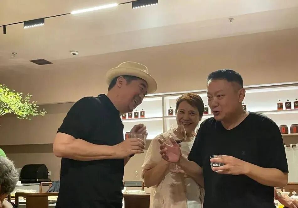 照片中,王熙凤的扮演者邓婕的丈夫张国立也现身,张国立与欧阳奋强举杯对饮,演员们欢聚一堂。