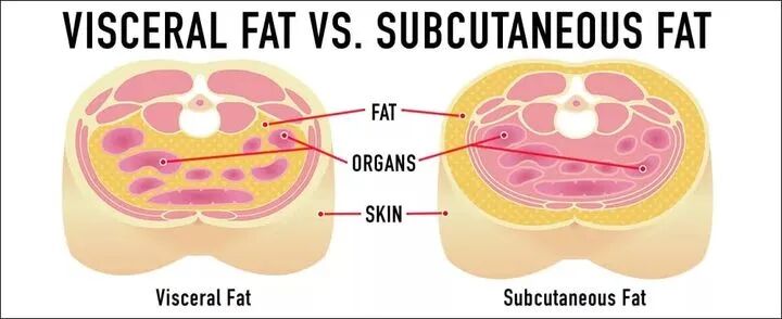 首先,来了解下啥叫内脏脂肪?我们人体呢有两种脂肪,一种是皮下脂肪,也就是我们所说的“手臂粗”、“大腿肉多”、“游泳圈”等一掐就能掐出厚厚一层脂肪的样子。