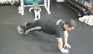 俯卧肩胛前伸:和俯卧撑预备姿势一样,差别是手臂撑住地面不动,始终保持手臂微屈,然后进行肩胛骨前伸后缩的运动,每组20次,做4组。