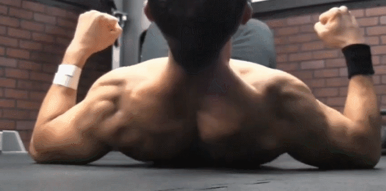 平地而起:躺在瑜伽垫上,手臂打开,手肘抵住地面,背部发力,想象着双肘向中间靠近,撑起身体,每组15~20次,做4组